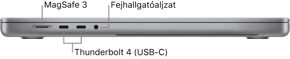 | Portok és Csatlakozás | SDXC-kártyaolvasó, HDMI‑port, 3,5 mm‑es jack, MagSafe 3 port, 3db Thunderbolt 4 csatlakozó, Wi-Fi 6, Bluetooth 5.0 |